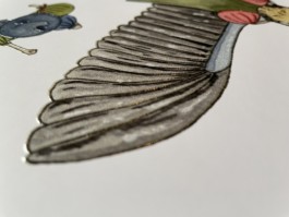 Es handelt sich bei diesem Buch um einen Prototypen. Sowohl die Braille-Schrift als auch die Lackdrucke auf den Bildern müsste eigentlich doppelt so hoch sein. Dies war aus Zeitmangel (Corona, Kurzarbeit...) nicht machbar. Es wurden 7 Schichten Lack aufgetragen. Dies bedeutet einen Zeitaufwand von ca. 20 Minuten pro Seite. Auch der Praxistest mit blinden Menschen war leider noch nicht möglich.