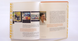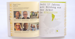 Weitere Gestaltungsdetails sind die Hervorhebung von Interviewseiten durch eine eigene Farbgebung und das sogenannte Familienalbum, das Menschen würdigt, die selbst mit keinen Beiträgen vertreten sind, denen die NGO dennnoch viel zu verdanken hat und die deshalb stellvertretend für alle WegbegleiterInnen genannt werden.